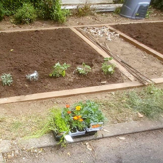 Once everything was bolted together and concreted into the ground, we levelled off the soil, added compost and planted some herbs along the front.