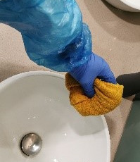 Thorough sanitisation of common area hand touch points in toilets/washrooms, disabled toilets and shower‐rooms on all floors. To include all sanitary ware, taps, partitions, doors/handles/push‐plates, hand dryer, using cleaning agents with proven efficacy against COVID‐19.